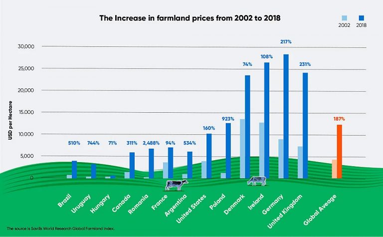 Economics are also a deterrent for young people. The financial barriers to entry for owning or running a farm, particularly in developed regions, have risen significantly. As agricultural technology and input gains advanced rapidly throughout the 20th century and into the 21st century — from tractors and tillers to drones, sensors, and seed genetics — yields improved, increasing the dollar returns from a single field. For instance, U.S. corn yields increased from fewer than 60 bushels per acre in 1960 to about 164 bpa in 2016. The value of farmland has also skyrocketed. Taking a recent snapshot, the Global Farmland Index of land prices in 15 global agricultural markets grew by an average annualized rate of 14.8 percent between 2002 and 2016. Taking a longer view, in 1900 the average value of a hectare of farmland in the U.S. was about $1,300, adjusted for inflation. By 2018, that figure had jumped to $10,205.
